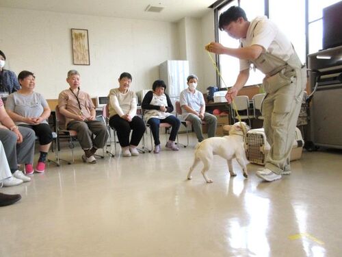 こんにちは(^_^)/生活介護事業所デイセンターういずです♪ 今回は、毎月1回実施しているアニマルセラピーの様子をお伝えします!! 毎月みなさんが楽しみにされている活動です♪ 「こんにちは。よろしくね」と優しく触ります。 犬を触る時は背中から・・・。上…