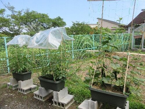 ミニトマトときゅうりを栽培しておりますので、ご紹介します。(^_-)-☆ 無理のない範囲で栽培しよう!ということでプランターで小規模 で育て、また利用者の方が世話のしやすいようプランターも高く設置しています。 植物とともにゆったりとした時間で動く心…