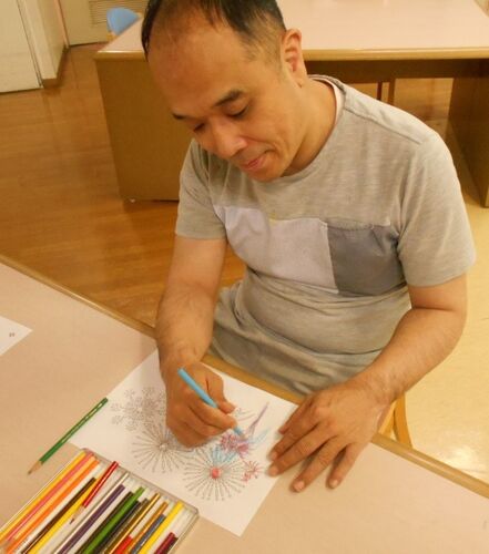 皆さんこんにちは。 三重県名張市にあります知的障害者入所施設の成美です❕❕ 今回は『塗り絵』の様子をご紹介します。 塗り絵に取り組まれている方々の様子です 今回は花火の塗り絵に挑戦していただきました 思い思いの色で塗っています 鮮やかな花火が沢山…