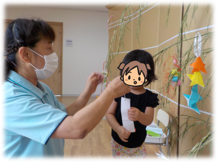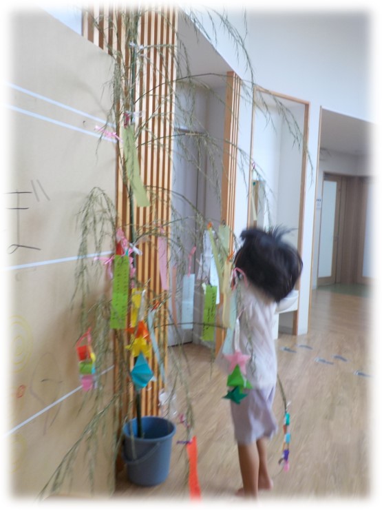 短冊を渡されると、何も言わなくても自分で掛けにいく子や