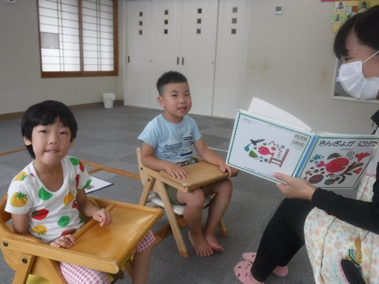 それに気づいた一人の子は、絵本のよく見える特等席へと座りました。
