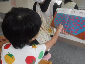 職員が絵本を読み進めていくと、次第に子ども達も『きんぎょがにげた』の世界観にだんだんとひきこまれていきます。