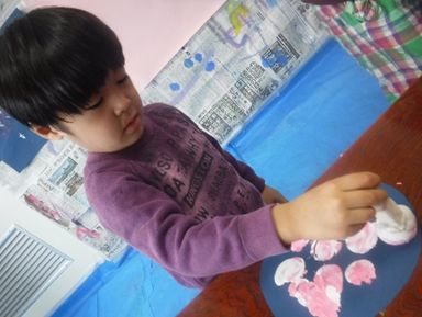 (絵の具をつけて、トントントン♪)