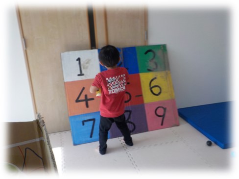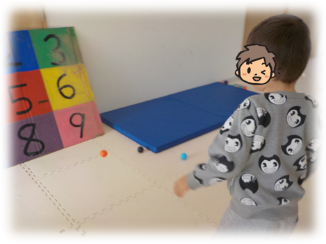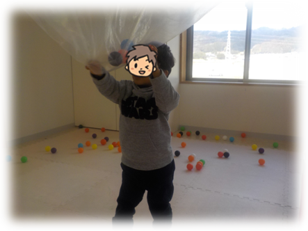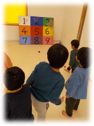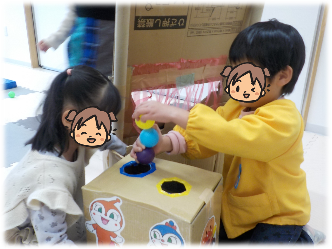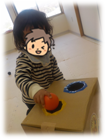 「チーズ」「いちご」と言いながら、ボールを入れていました。