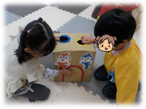 手作りおもちゃで、みんなが楽しそうに遊んでいる姿を