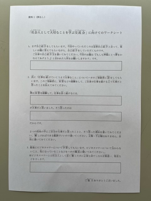 当日は、今春に高校を卒業され、この4月から新社会人として働き始める新社会人の方に参加していただきました。
