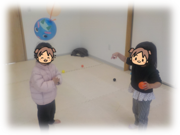 豆の替わりに、布玉やセラピーボール、ゴムボールを投げます。