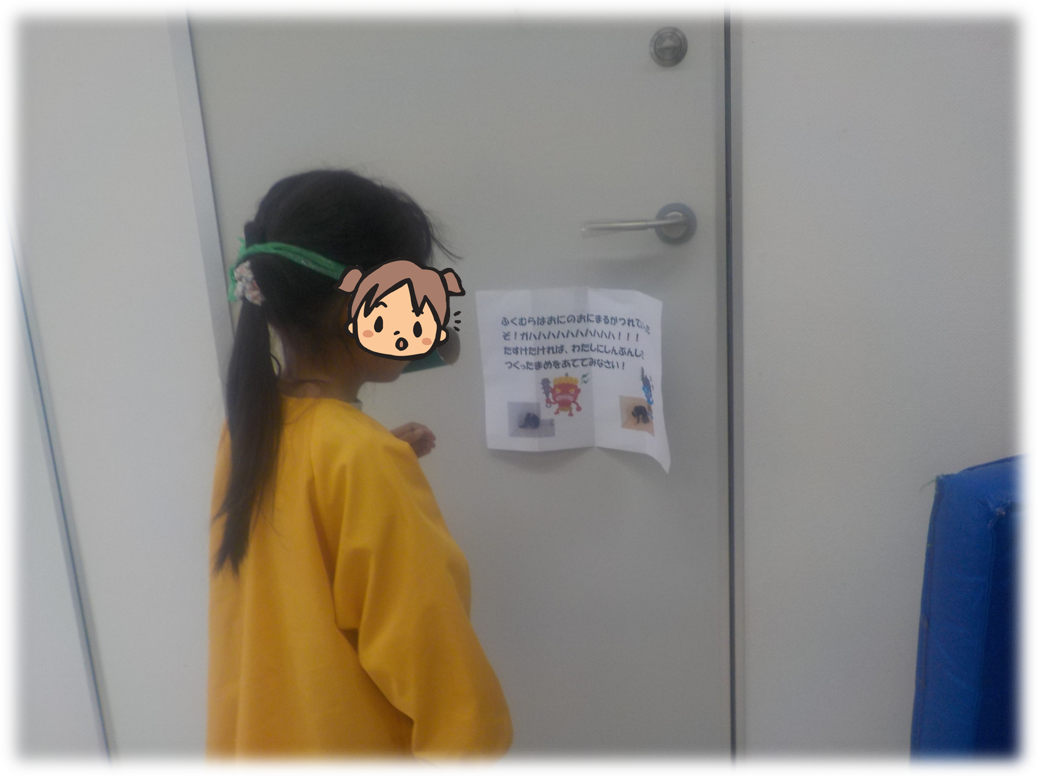 大きいクラスのお友達の部屋には鬼のおにまるからの挑戦状が!!