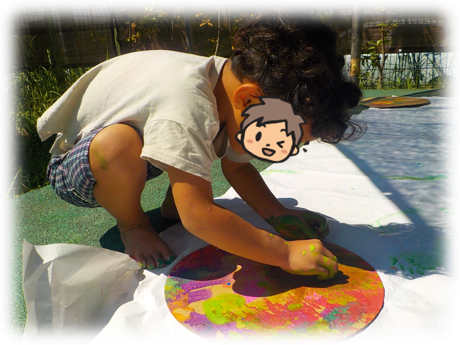 ペンやクレヨン、絵の具を使ってお絵描き遊びを楽しみました。