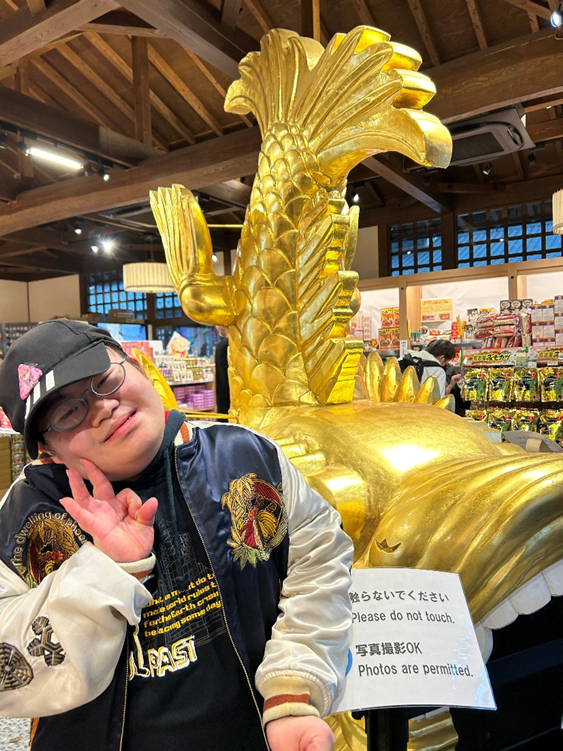 お土産物屋さんには、なんと名古屋城のシンボル☆実物大の金のしゃちほこが鎮座していました。やっぱり、すごーい😮